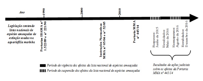 Brasil. Ministério do Meio Ambiente.Portaria n° 445, de 17 de dezembro de 2014. Diário Oficial da União, Brasília, DF, 18 dez. 2014. Disponível em: http://www.icmbio.gov.br/cepsul/images/stories/legislacao/Portaria/2014/p_mma_445_2014_lista_peixes_amea%C3%A7ados_extin%C3%A7%C3%A3o.pdf. Acesso em: 06 nov. 2017. 2014a.