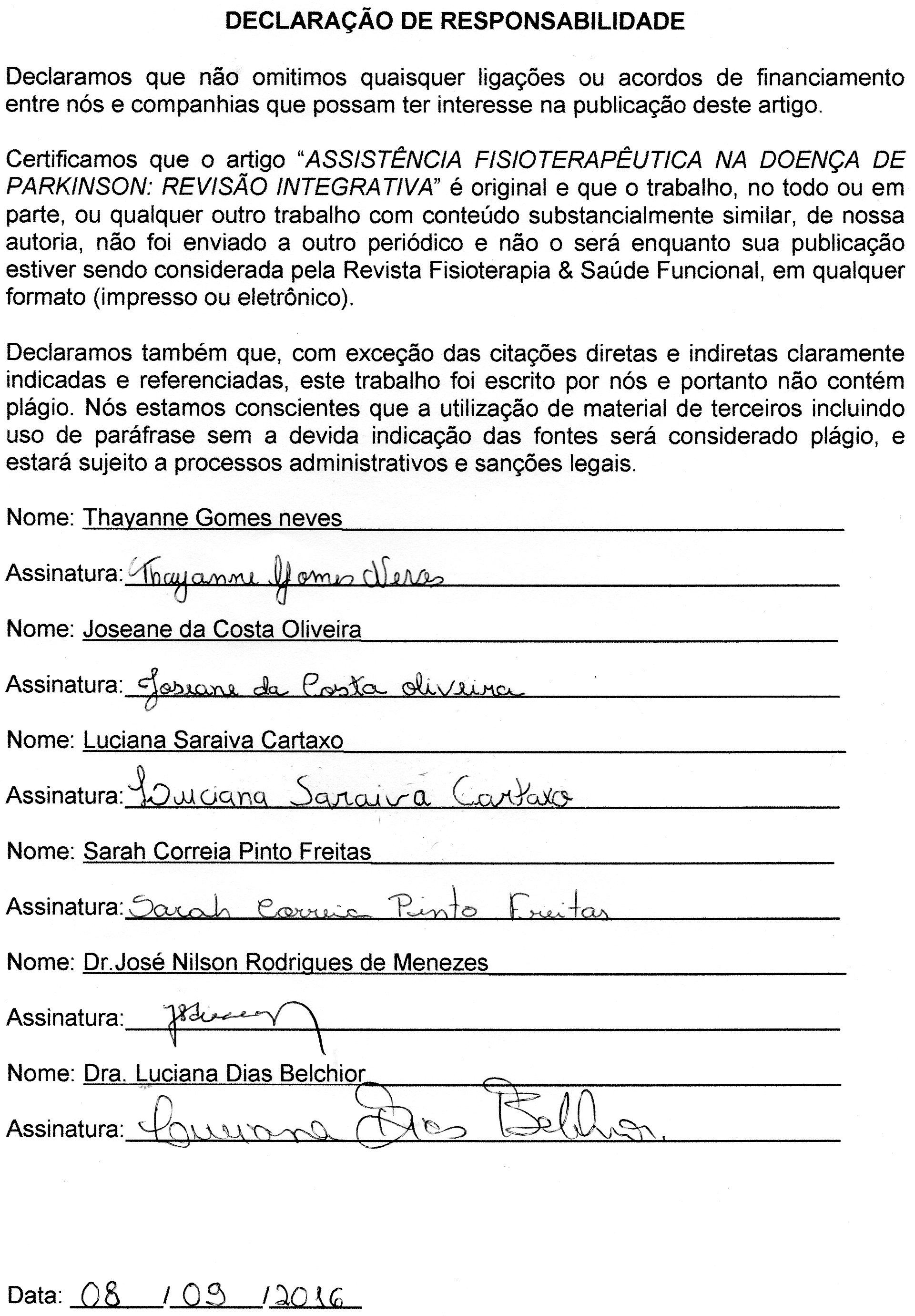 ASSISTÊNCIA FISIOTERAPÊUTICA NA DOENÇA DE PARKINSON: REVISÃO INTEGRATIVA