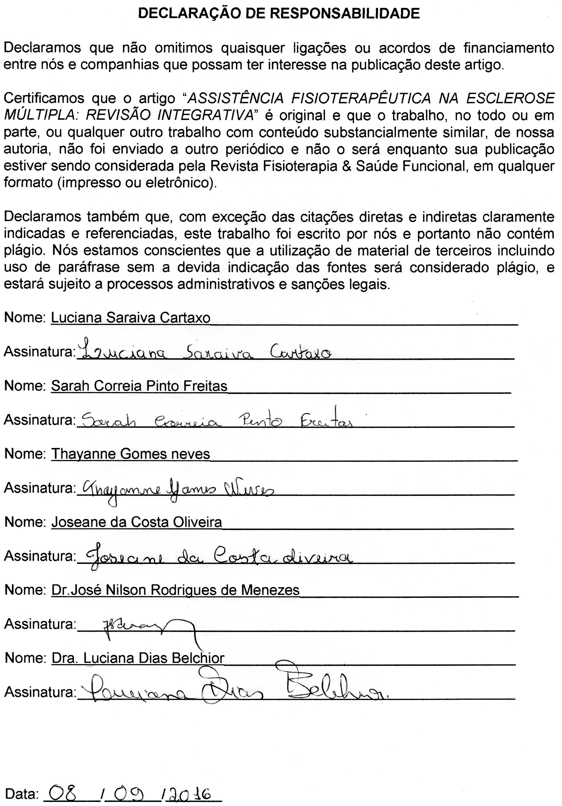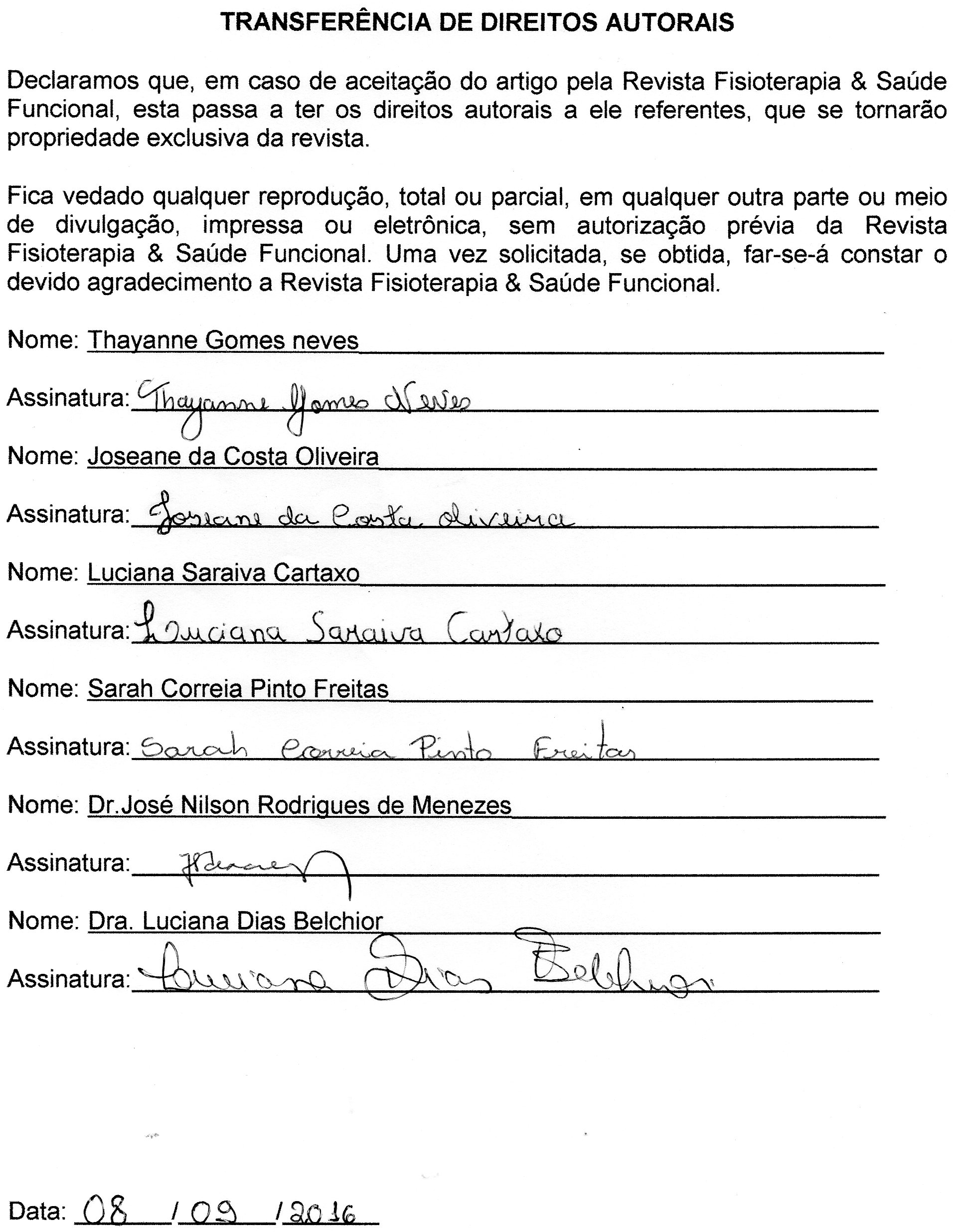 • Luciana Saraiva Cartaxo Graduada pela Universidade de Fortaleza em Fisioterapia