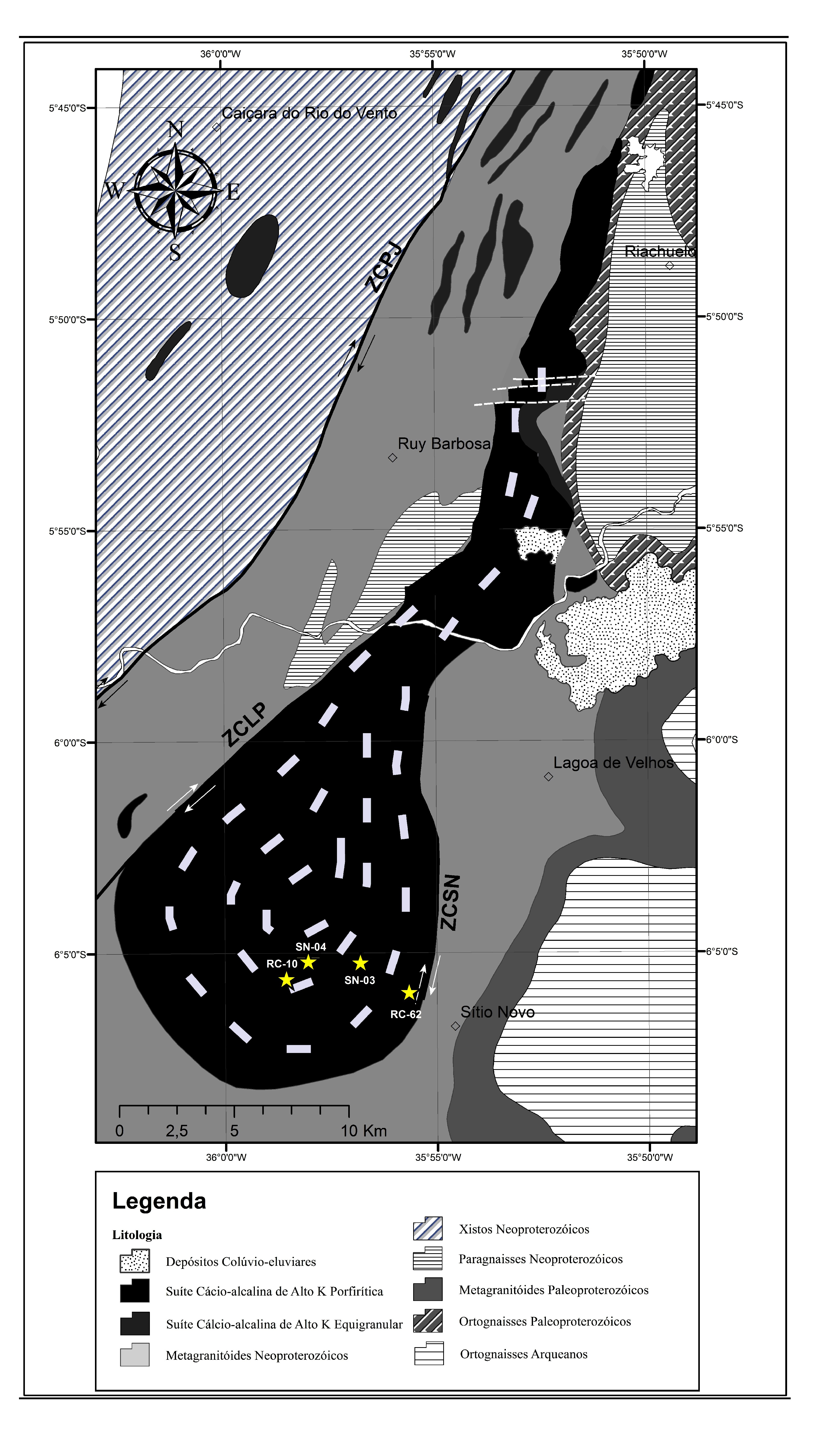 Nascimento, M. A. L., Medeiros, V. C., Galindo, A. C. 2008. Mag¬matismo Ediacarano a Cambriano no Domínio Rio Gran¬de do Norte, Província Borborema, NE do Brasil. Estudos Geológicos, 18(1): 4-29.