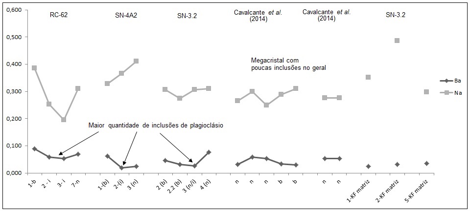 O Plúton Granítico Barcelona (PGB) localizado na porção nordeste da Província Borborema, a oeste do Domínio São José do Campestre, caracteriza-se pela presença de três fácies petrográficas distintas, com amplo domínio de granitos porfiríticos com assinatura química cálcio-alcalina de alto K. Os granitos porfiríticos são marcados pela presença de megacristais de K-feldspato micropertítico com uma variedade de inclusões minerais marcando um zonamento concêntrico. O trabalho apresenta uma caracterização textural e química dos megacristais de K-feldspato dos graníticos porfiríticos, além da descrição petrográfica detalhada de suas principais inclusões. Os resultados apontam para um prolongado intervalo de cristalização e arrefecimento magmático relativamente lento, o que exclui a formação dos megacristais por processos subsolidus. O zonamento dos megacristais é marcado pela variação nas quantidades de inclusões dos núcleos para as bordas cristalinas, bem como pela variação nos teores de sódio e bário, refletindo a cristalização concomitante de plagioclásio, quartzo e outras fases que influenciam a partição destes elementos.