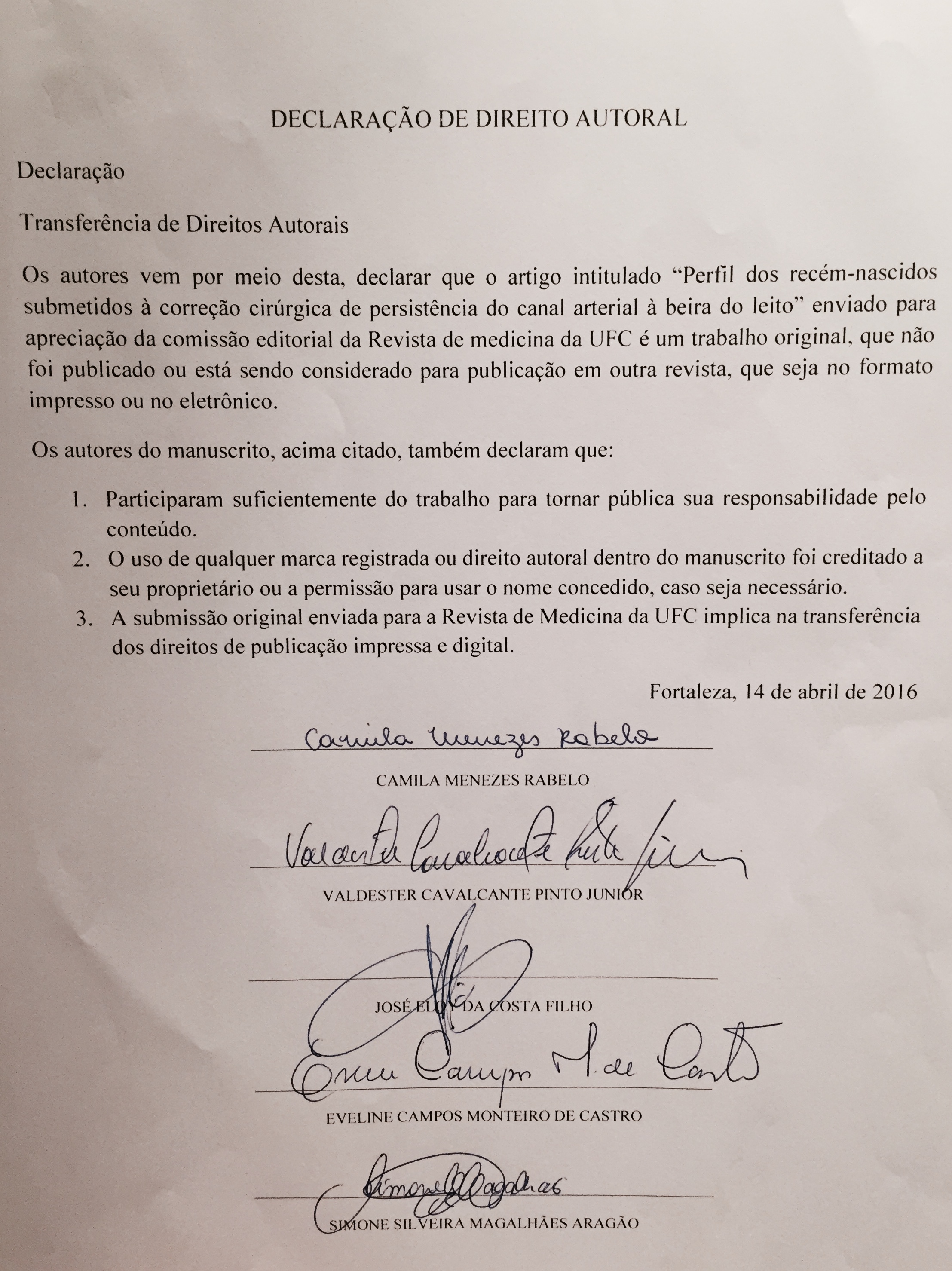 Introdução: malformações congênitas são importantes causas de mortalidade infantil nos recém-nascidos (RNs) prematuros, sendo a cardiopatia congênita (CC) uma das responsáveis. Objetivo: demonstrar o perfil clínico e epidemiológico dos RNs submetidos à cirurgia de correção de persistência do canal arterial (PCA) à beira do leito. Material e Métodos: estudo longitudinal retrospectivo, realizado nas Unidades de Terapia Intensiva Neonatal de um hospital terciário, no período de janeiro a dezembro de 2015. Resultados: a maioria dos pacientes foram RNs de extremo baixo peso e do sexo feminino, que apresentaram as mais variadas manifestações clínicas e complicações como hemorragia peri-intraventricular, insuficiência real e displasia broncopulmonar, mesmo tendo feito uso de corticoide antenatal, surfactante e suporte ventilatório. Conclusão: RNs submetidos à cirurgia foram àqueles prematuros extremos, do sexo feminino e extremo baixo peso ao nascer, que sofreram com complicações maternas ainda no período gestacional.Downloads