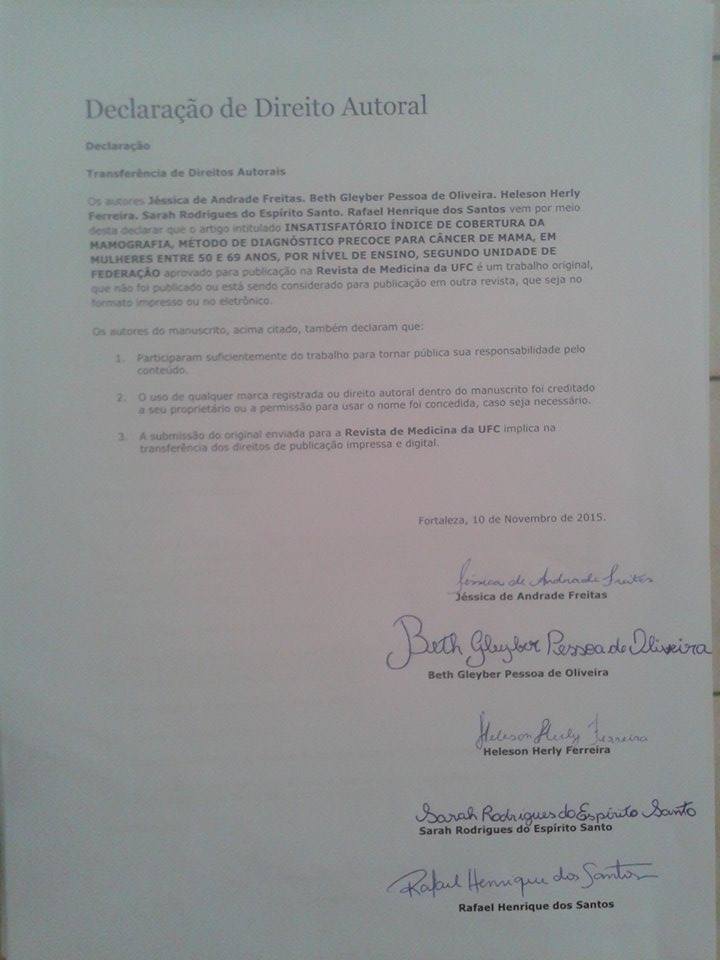 Introdução: O câncer de mama é o mais incidente na população feminina brasileira e mundial, excetuando-se o câncer de pele não melanoma, sendo também, o que apresenta a maior mortalidade feminina. Objetivo: analisar a cobertura da mamografia segundo Unidade de Federação, em mulheres entre 50 e 69 anos, por nível de ensino. Metodologia: Esse estudo transversal analisou dados do Departamento de Informática do Sistema Único de Saúde (DATASUS), sobre a Pesquisa Nacional em Saúde realizada pelo Instituto Brasileiro de Geografia e Estatística (IBGE), no ano de 2013. Foram agrupadas as mulheres de 50 a 69 anos que realizaram o exame de mamografia a menos de dois anos, e subdivididas em quatro graus de escolaridade. Resultados: Verificou-se que os índices de cobertura do exame no Brasil (60,00%) e em cada Estado da Federação, tais como, Maranhão (31,90%), Pará (34,80%), Ceará (41,10%) e Distrito Federal (68,70%), encontram-se abaixo das recomendações da Organização Mundial de Saúde. Além disso, a cobertura aumenta à medida que cresce o grau de instrução dessas mulheres. Conclusão: Há uma distribuição heterogênea da cobertura de mamografia no Brasil e no Ceará, que se relaciona a diversos aspectos sociais, notadamente ao nível de escolaridade das mulheres.