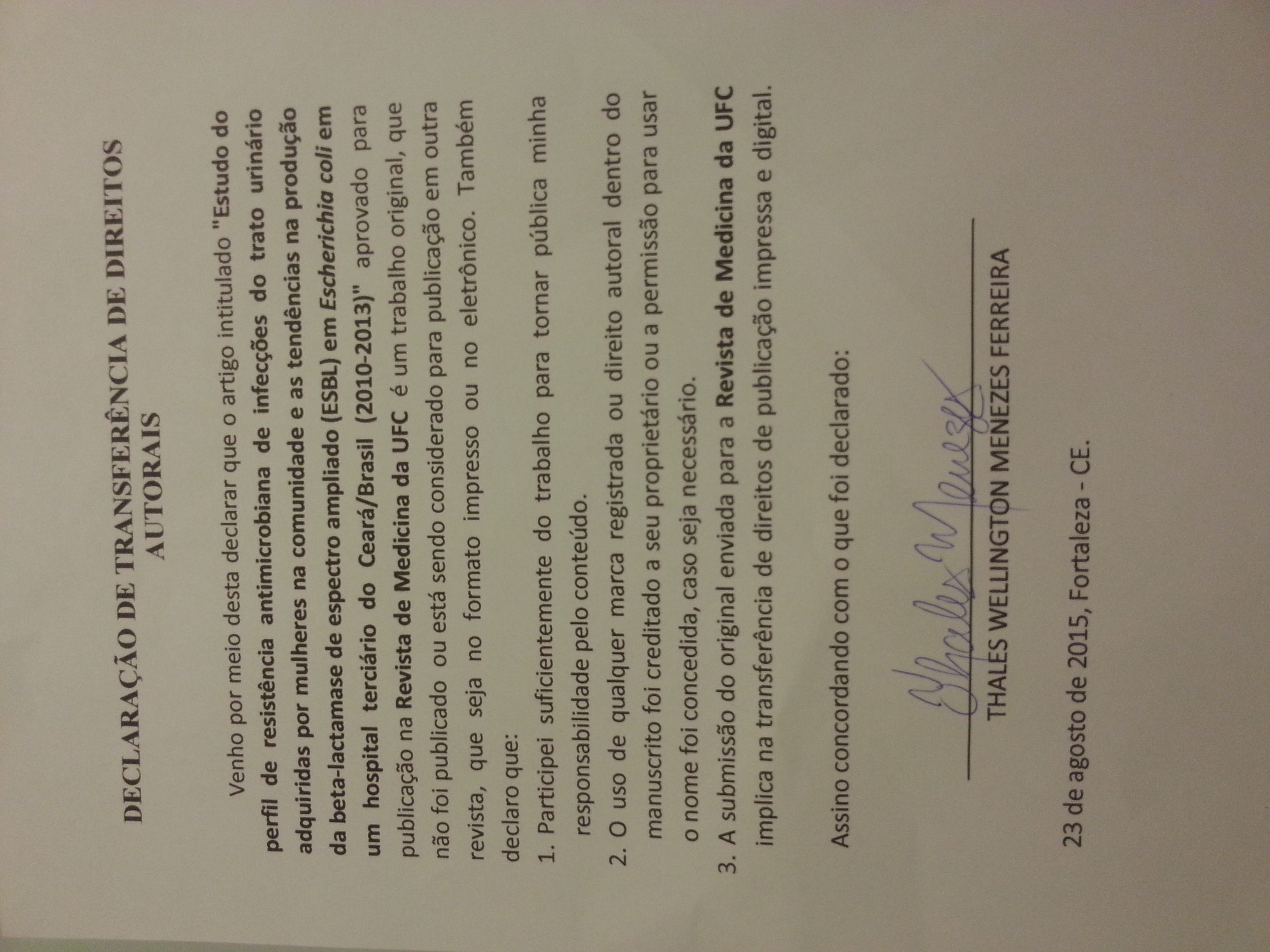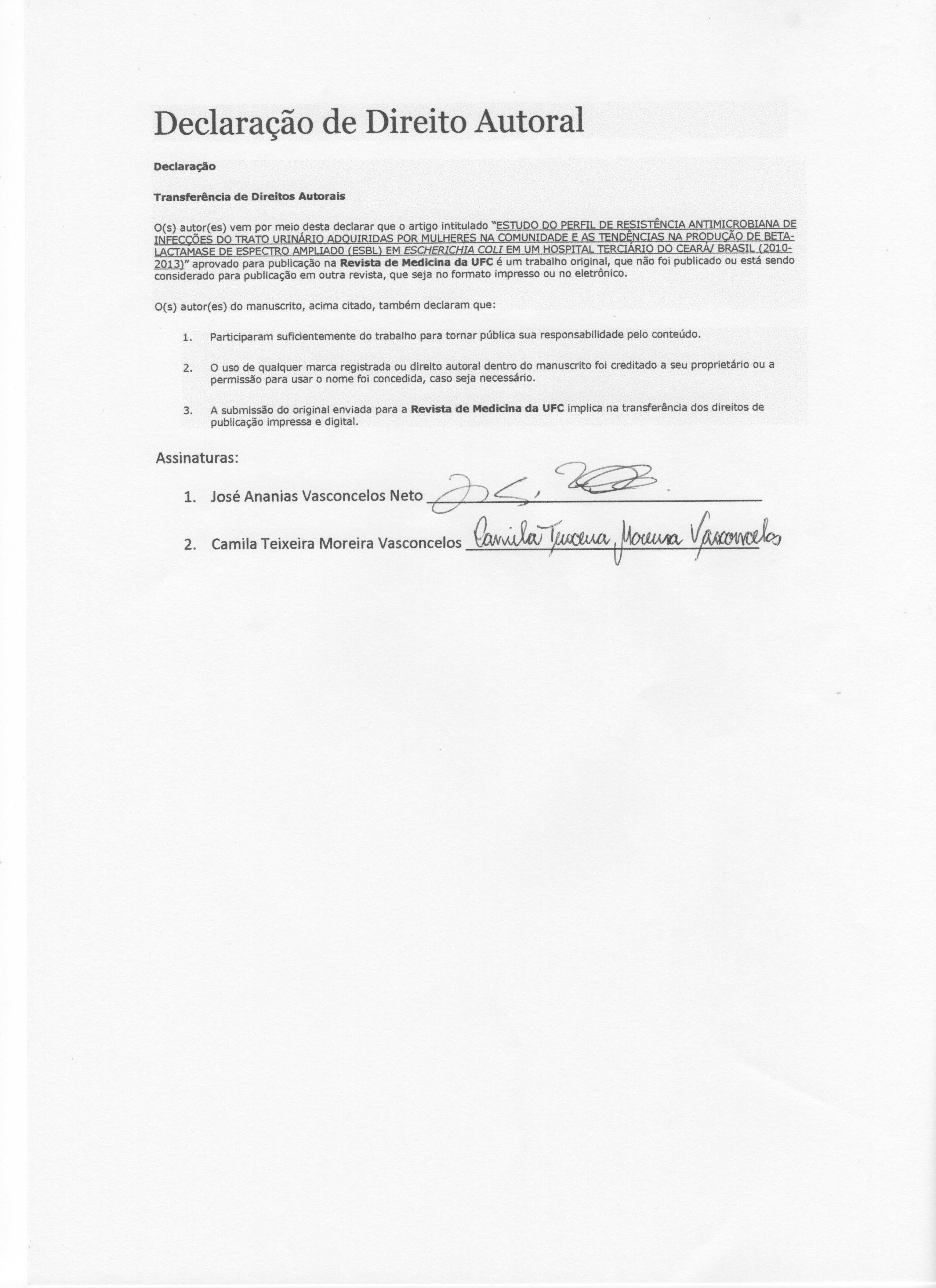 Perfil de resistência aos antimicrobianos e prevalência da produção de beta-lactamases de espectro estendido em cepas de Escherichia coli em um hospital terciário do Ceará, Brasil (2010 – 2013)