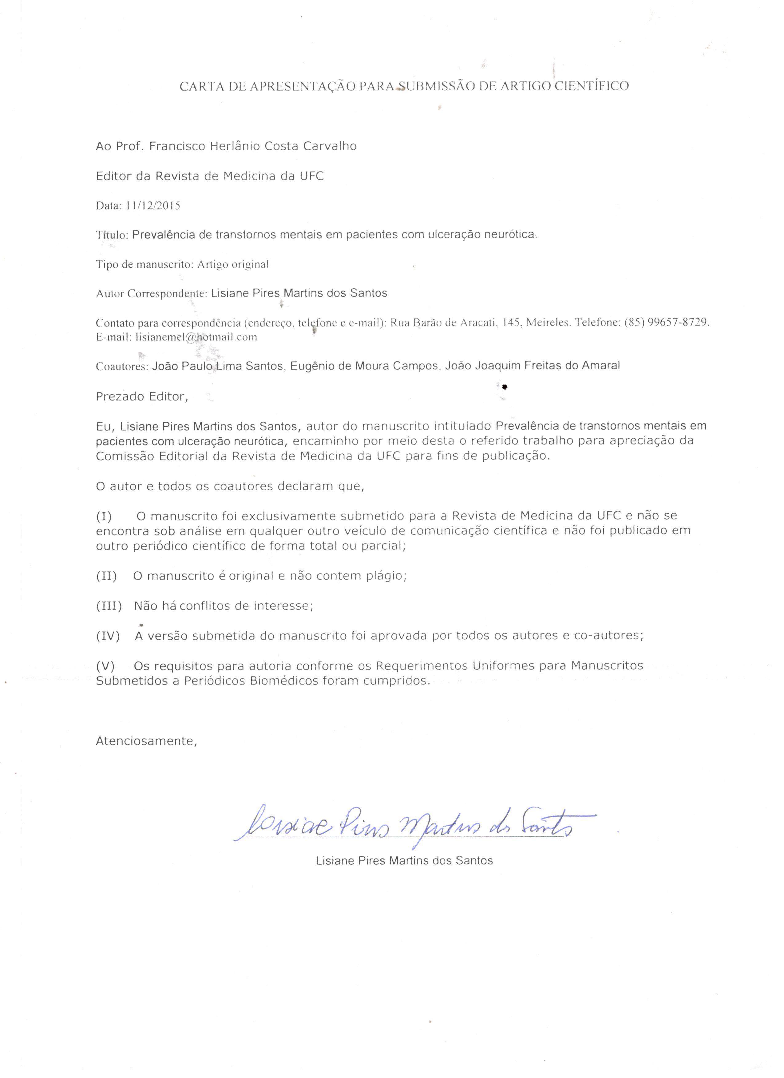 Introdução: A ulceração neurótica é um transtorno mental de difícil tratamento associado a diversos fatores, incluindo outros transtornos mentais que acabam por interferir no seu prognóstico. Objetivou-se avaliar a prevalência dos transtornos mentais nos pacientes com ulceração neurótica. Material e Metódos: Foram avaliados 34 pacientes no ambulatório de dermatologia do Hospital Universitário Walter Cantídio (HUWC) no período de agosto a setembro de 2015 através de questionários sócio-demográficos, de variáveis clinicas e do Mini International Neuropsychiatric Interview (MINI). Resultados: Foi encontrado maior prevalência em mulheres (91,2%), solteiros (50%), com 64,7% deles em uso de medicamentos psiquiátricos, 35,3% com tratamento psicológico, 61,8% com transtornos depressivos, 50% com transtornos de ansiedades. Discussão: Levando em conta o sofrimento, os sentimentos negativos e o comprometimento social ou ocupacional relacionado à dermatilomania, chama a atenção a associação com outros transtornos psiquiátricos e a importância da sua intervenção.Arquivos adicionais