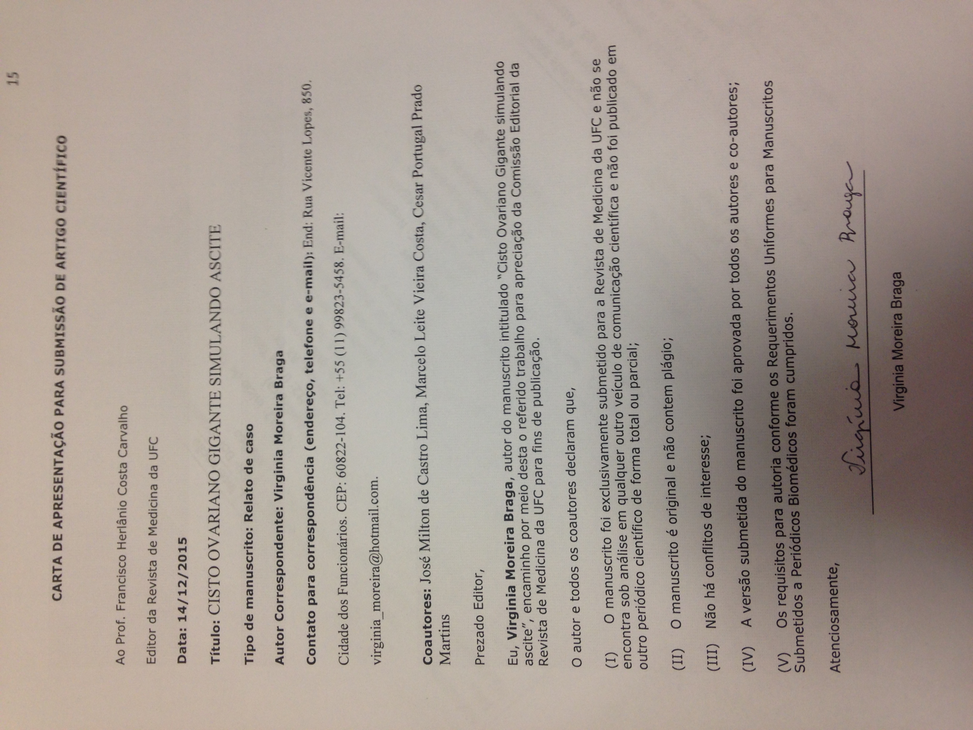 Cisto ovariano gigante simulando ascite é um evento raro devido ao avanço do diagnóstico precoce por imagem nos serviços de saúde. O diagnóstico diferencial com ascite é o maior desafio durante o manejo desses cistos. Como tratamento, requerem ressecção pelos sintomas associados que podem causar, como complicações devido ao efeito de massa, dificuldades em estabelecer a origem da lesão e do risco de malignidade (raro). Descreveremos um caso de uma jovem com cisto ovariano gigante internada com hipótese inicial de ascite de causa a esclarecer.Arquivos adicionais
