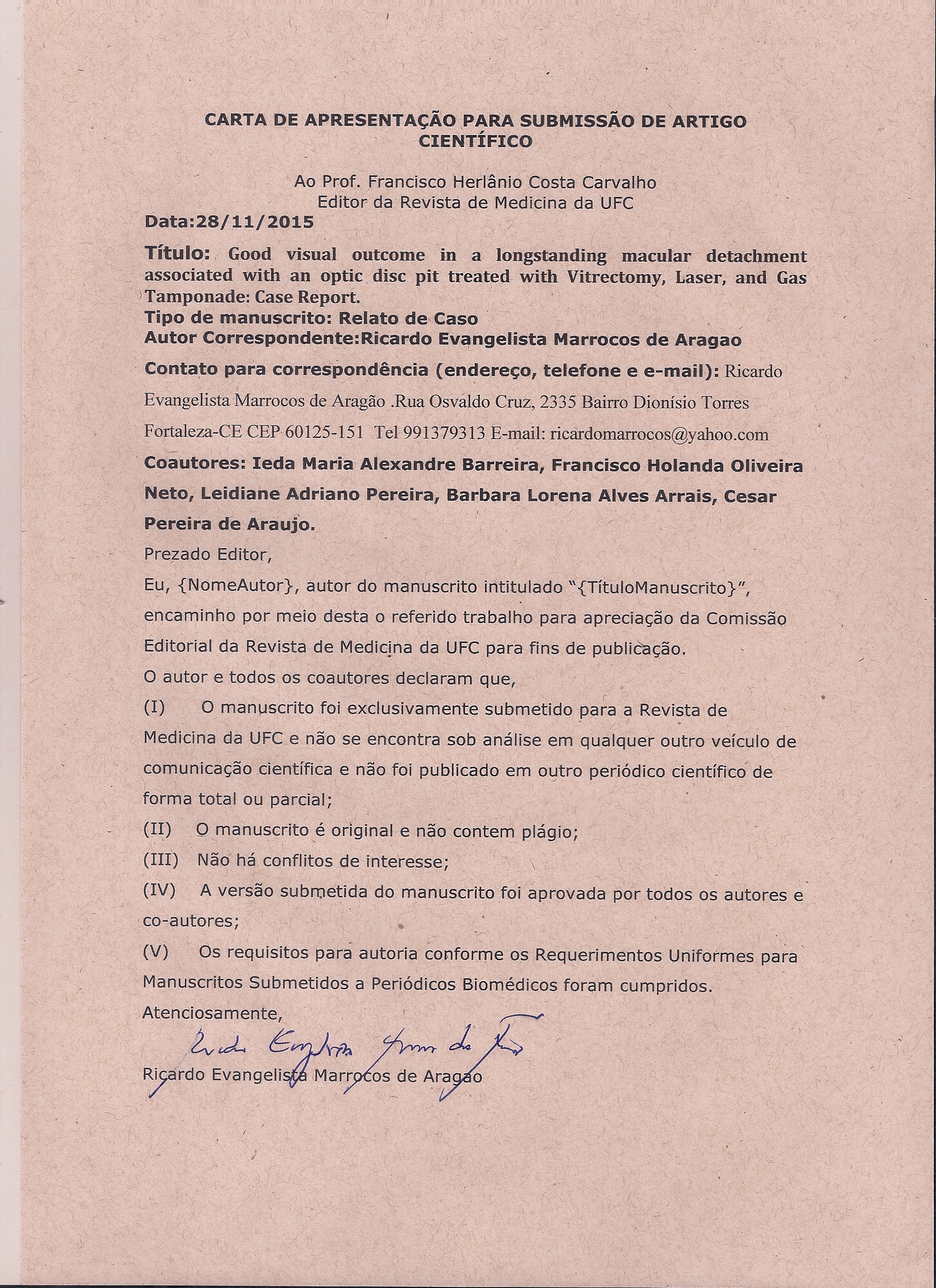 Good visual outcome in a longstanding macular detachment associated with an optic disc pit treated with vitrectomy, laser, and gas tamponade: case report.<br> doi: 10.20513/2447-6595.2016v56n1p68-70