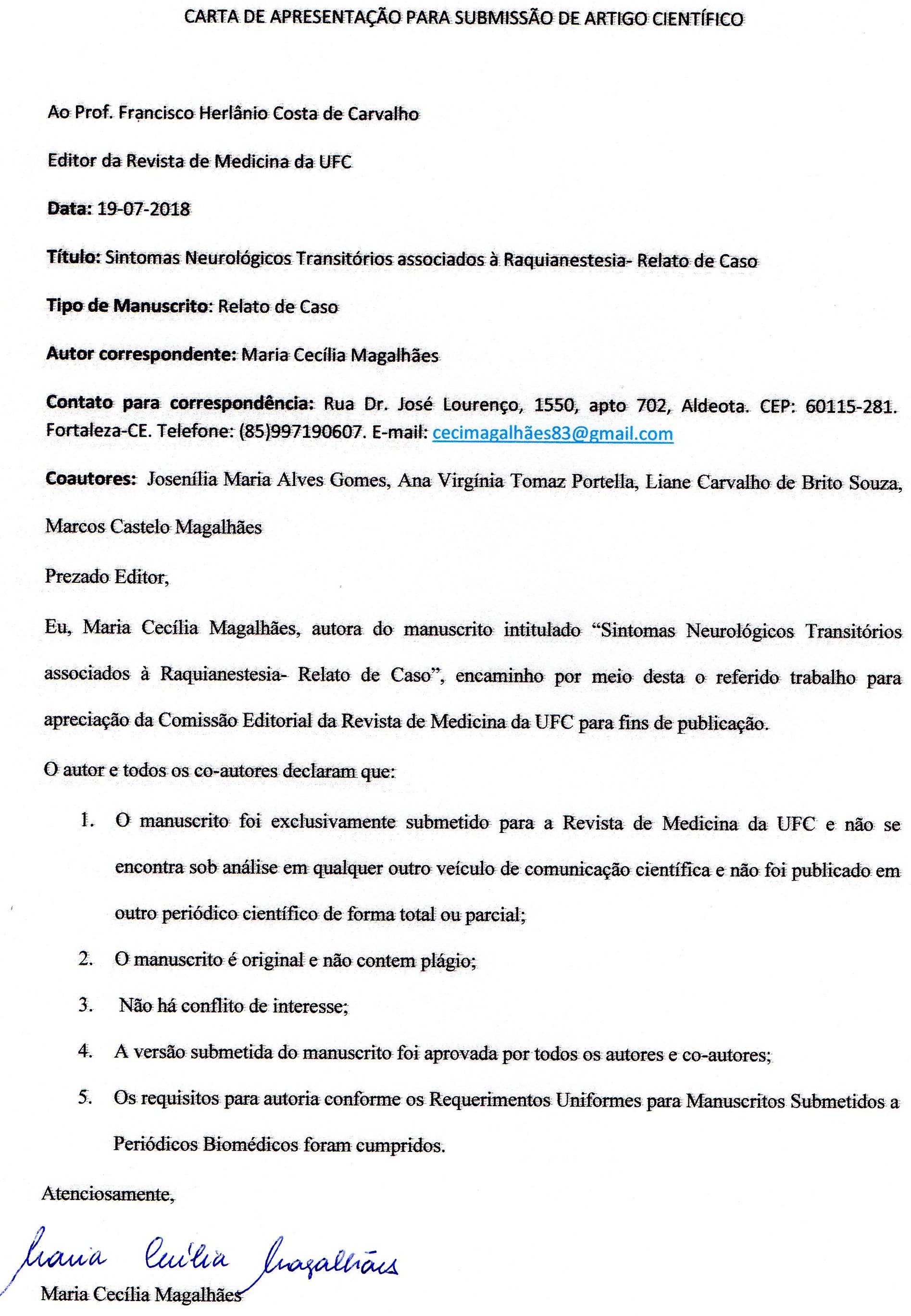 Sintomas neurológicos transitórios associados à raquianestesia - relato de caso