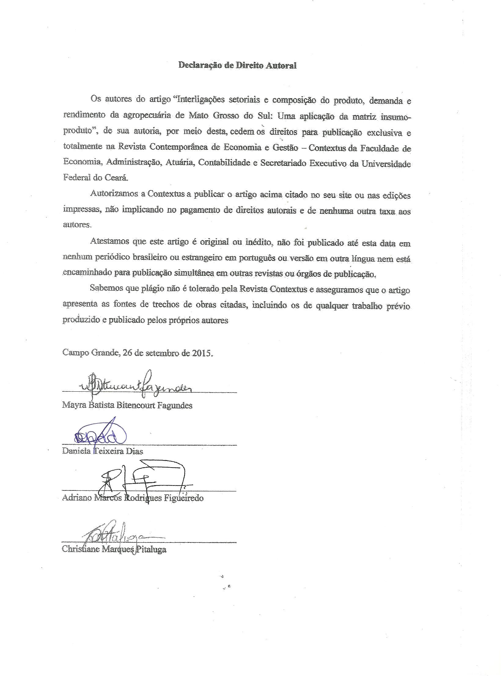 We authors hold the copyright related to our paper and transfer Contextus journal the right for the first publication with a Creative Commons’ international license of the modality Attribution – Non-commercial 4.0, which in turn allows the paper to be shared providing that both the authorship and the journal’s right for initial release are acknowledged.