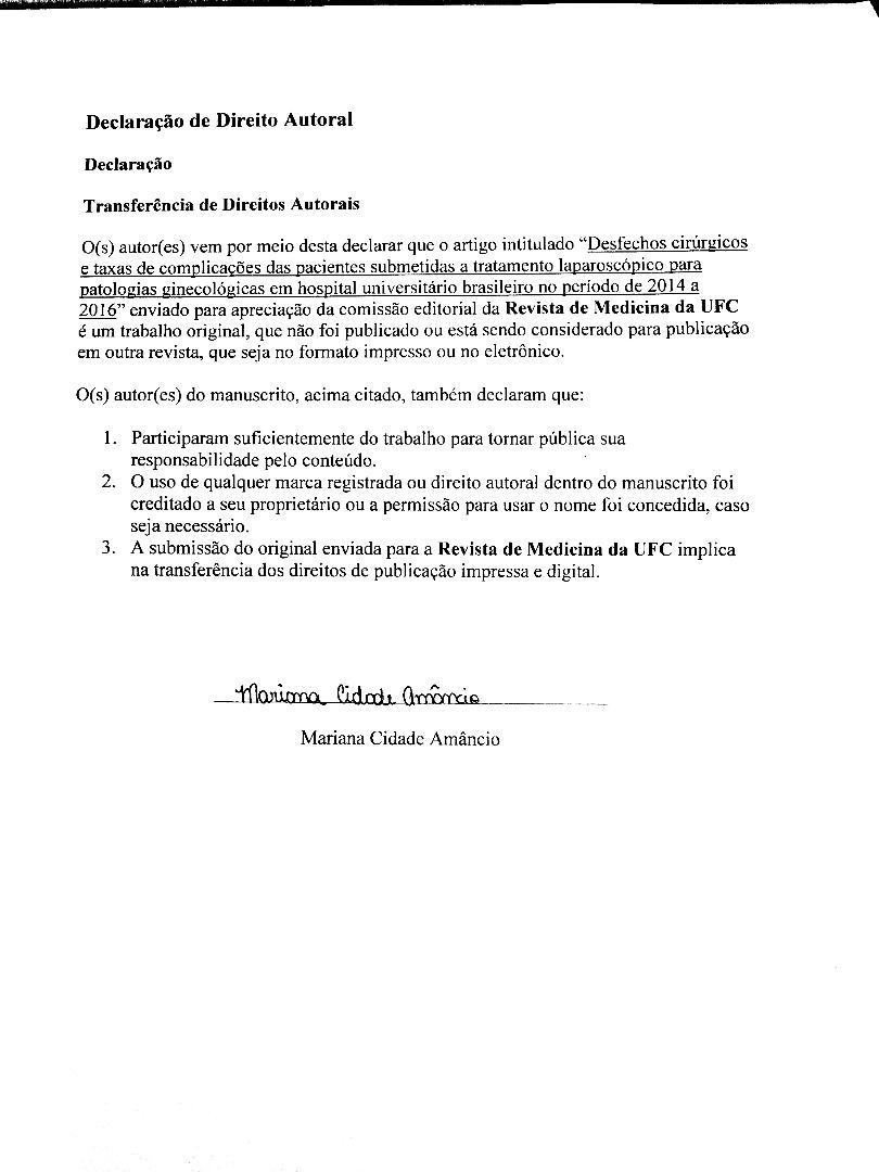 Objetivo: coletar informações do prontuário de todas as pacientes que realizaram cirurgia laparoscópica ginecológica, afim de identificar quais cirurgias foram mais realizadas por videolaparoscopia e de avaliar as principais complicações cirúrgicas intra e pós-operatórias ocorridas. Metodologia: estudo retrospectivo realizado em hospital terciário universitário de Fortaleza, Ceará, Brasil, durante o período de setembro de 2014 a novembro de 2016. Resultados: os procedimentos ginecológicos laparoscópicos mais realizados durante o período estudado foram ooforoplastia, exérese de foco de endometriose, lise de aderências, salpingooforectomia, salpingectomia e laqueadura tubária. As complicações intraoperatórias ocorreram em 13 das 238 cirurgias realizadas no período referido, com 4 cirurgias convertidas para laparotomia. As complicações cirúrgicas observadas no pós-operatório imediato ocorreram em 89 casos no total, sendo 45 casos de dor, 13 casos de sangramento e 10 casos de intercorrências clínicas. Conclusão: existem complicações inerentes à prática cirúrgica e na cirurgia laparoscópica há complicações específicas desta técnica, estando algumas taxas de complicações do nosso estudo semelhantes e outras menores que as taxas relatadas na literatura mundial. É essencial comunicar nossas complicações para contribuir para um melhor conhecimento sobre elas, assim como classificá-las e registrá-las apropriadamente.Downloads